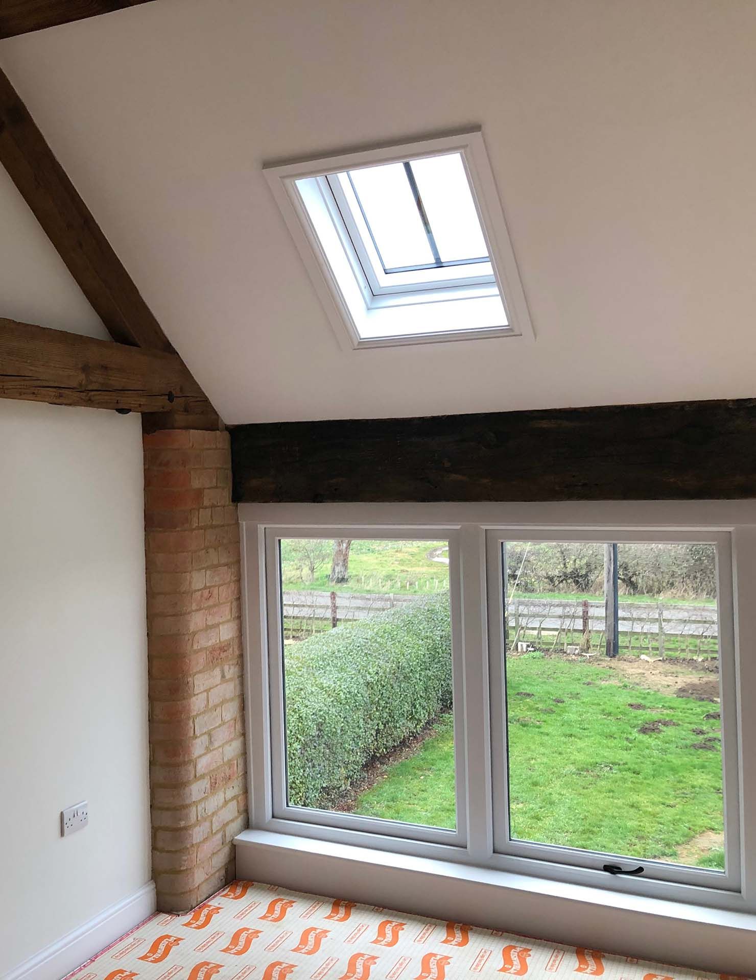 The building was completely re-pointed using lime mortar with any badly damaged bricks replaced with reclaimed bricks, the timber roof was completely made from scratch by our talented craftsmen with the existing queen post trusses fully refurbished, with new clay pantiles as covering. Our newly opened bespoke timber workshop made all of the sapele hardwood external windows and doors, the walls, floors and ceilings were fully insulated and plastered to give a modern, clean feel to the property with quirky exposed traditional features.