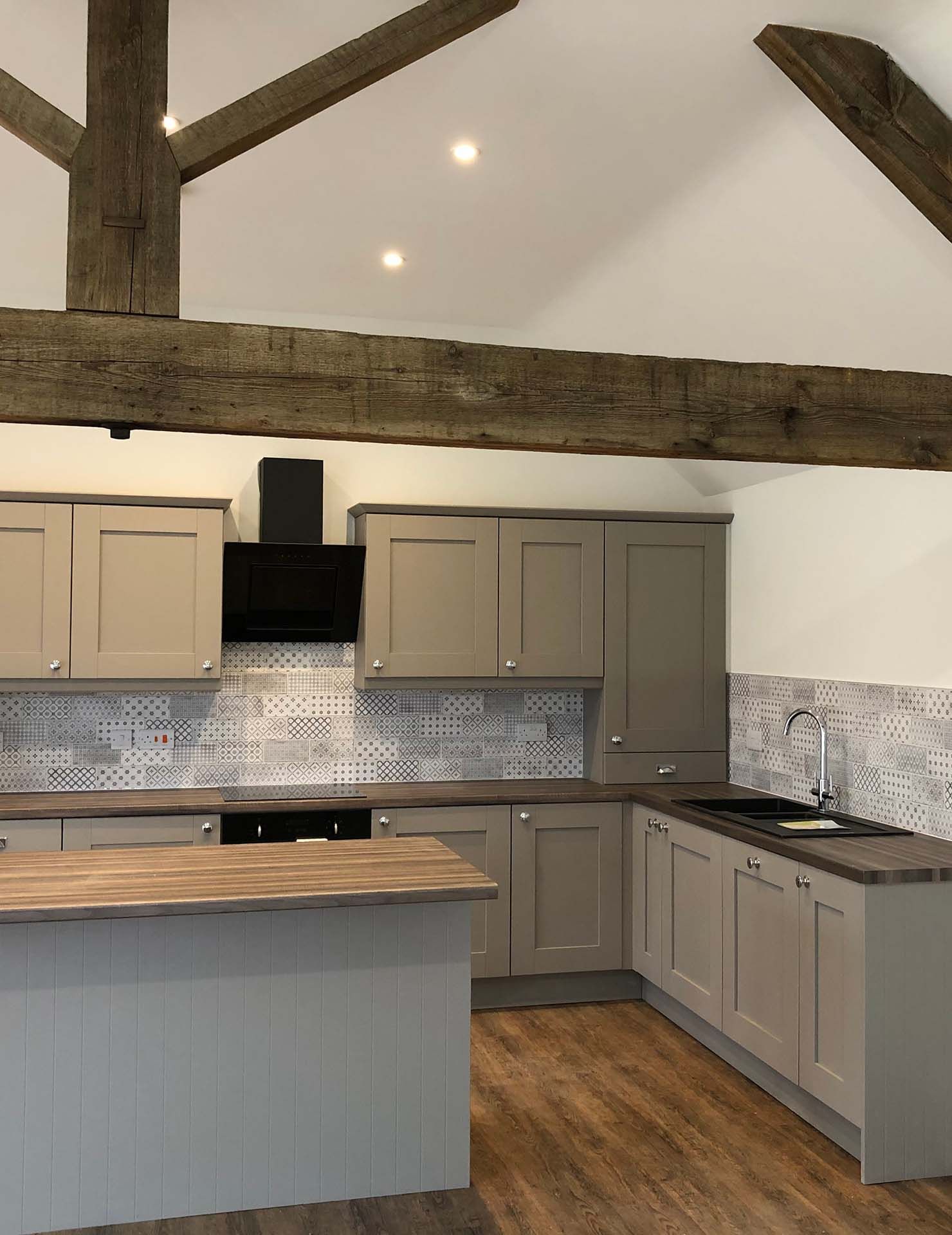 Then along with the client and designer we worked together in designing the new floors, roof, layout of the properties, Kitchens and Bathrooms.